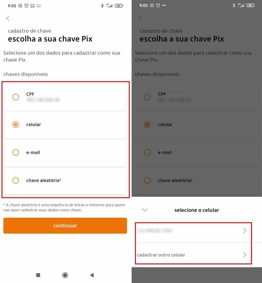 5. Escolha o seu tipo de chave e toque em “Avançar”. Em nosso caso, nós optamos pelo método do celular;